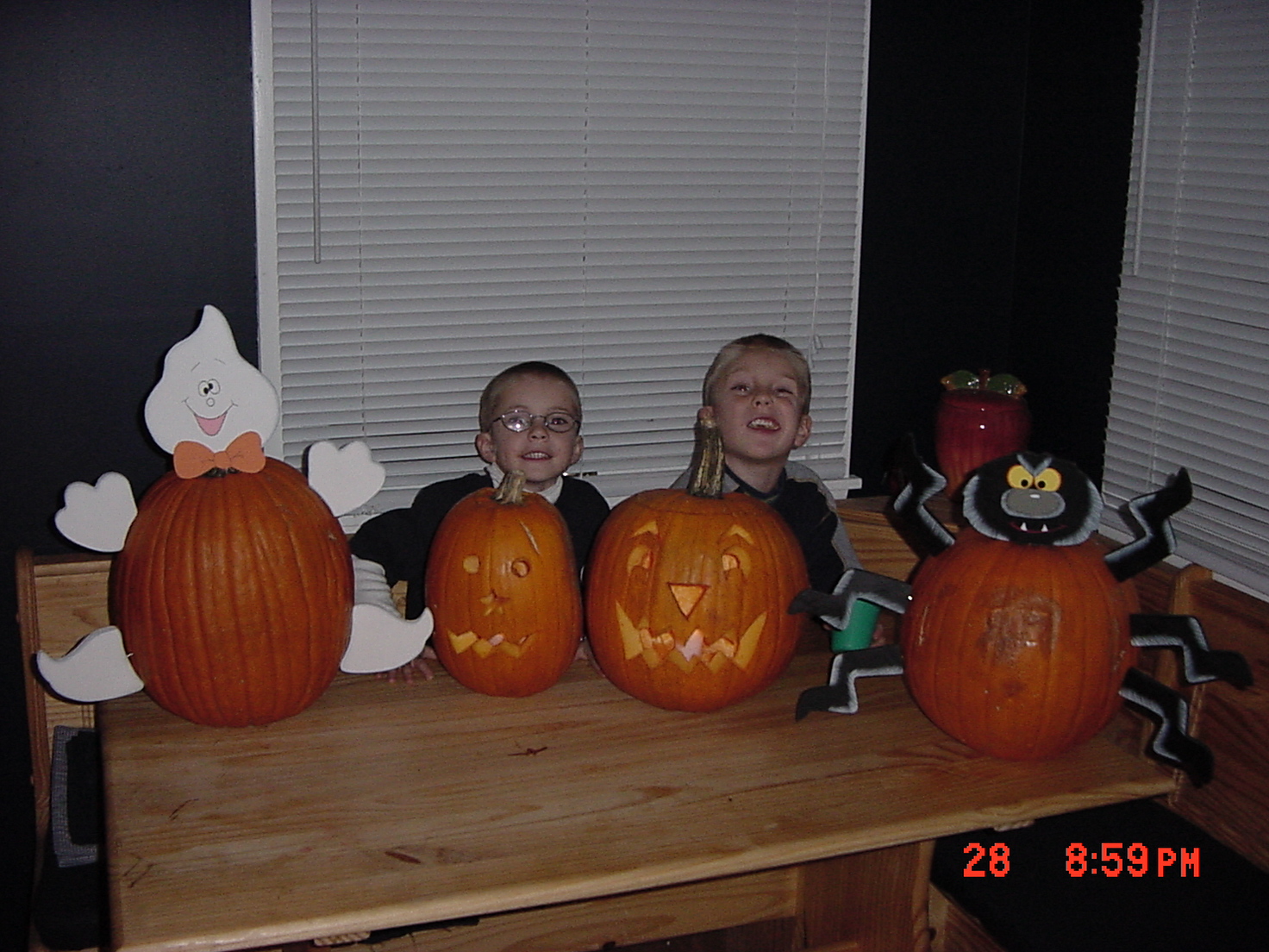 Brady and Cody carving pumpkins